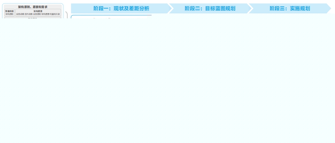 业务能力规划:基于行业趋势、监管要求与同业实践参考,数字化转型战略要求,参照行方的需求分析及现状评估结果,制定业务能力图。应用架构规划:借鉴国内先进银行架构实践,设计出切合实际的、具有可操作性的应用架构,并给予对现有应用系统完善和改进的策略和措施。数据架构规划:围绕数据条线工作,在现状评估报告基础上,建立目标数据架构蓝图。技术架构规划:规划符合行方中长期开展,能快速响应业务需求的开发和运维支撑体系,规划符合监管要求及业务陆续在性要求的“两地三中心”容灾等技术架构。科技治理规划:根据信息科技战略定位,结合企业架构,对信息科技治理体系进行优化设计。对科技需要重点落地的项目进行深度研究探讨,对重点项目给予专题咨询服务,形成架构专题方案。