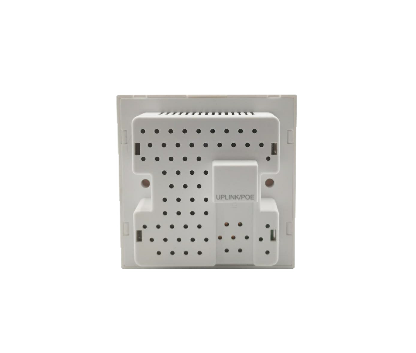 WiFi 6室内双频墙面AP,内置天线,双频四流,最大带宽1.775Gbps;背面1个10/100/1000Mbps上联接口,底部1个10/100/1000Mbps下联接口,支持802.3af/at PoE远程供电。(PoE供电模块需要单独选购) 必选